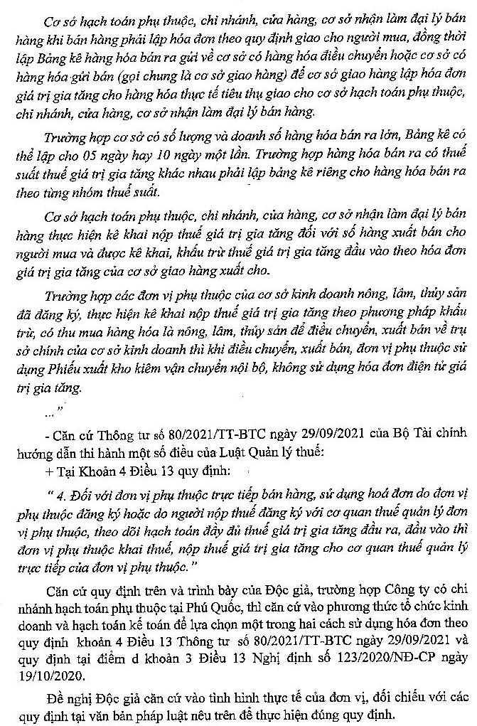 Công ty tôi có trụ sở chính tại tỉnh Tây Ninh. Sắp tới, tôi dự kiến mở chi nhánh hạch toán phụ thuộc tại Phú Quốc. Trong trường hợp hợp đồng bán hàng do công ty mẹ ký kết, nhưng việc giao hàng thực hiện tại Phú Quốc.