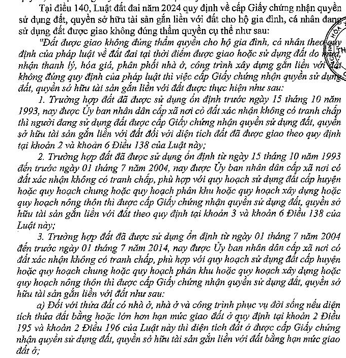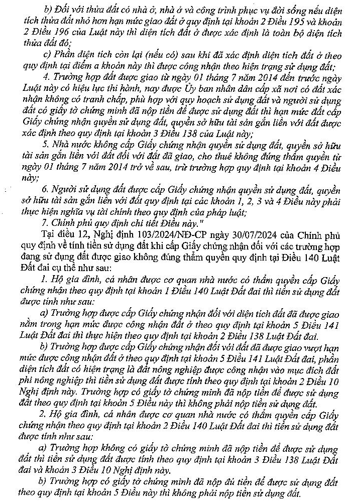 Kính gửi: Bộ Tài chính Từ năm 1990 đến nay, Bộ Tài chính đã ban hành các quy định liên quan đến việc ghi nợ tiền sử dụng đất đối với các trường hợp Nhà nước giao đất có thu tiền sử dụng đất nhưng người được giao đất chưa nộp hoặc nộp chưa đủ tiền sử dụng đất, cũng như việc thông báo hàng năm về số tiền sử dụng đất còn nợ của người được Nhà nước giao đất? Hiện nay phát sinh trường hợp như sau: Các Phiếu thu tiền sử dụng đất lập vào các năm 1990, 1991 chỉ có chữ ký của Thủ quỹ và cán bộ thanh toán, không có dấu của cơ quan thu tiền, nhưng lại được ghim kèm “tích kê” có ghi rõ số hiệu thửa đất, cùng chữ ký và dấu của cơ quan giao đất. Đến nay, cơ quan giao đất và cơ quan thu tiền sử dụng đất thời điểm đó đã giải thể, do đó người được giao đất không còn khả năng tìm lại nhân chứng để xác nhận các giấy tờ đó. Trong tình huống nêu trên, đề nghị Bộ Tài chính hướng dẫn về việc xử lý số tiền sử dụng đất thể hiện trên Phiếu thu như thế nào, khi thực hiện thủ tục đăng ký, cấp Giấy chứng nhận thì cơ quan chức năng xác định (tại thời điểm tháng 10/2025): toàn bộ diện tích đất thuộc hạn mức công nhận đất ở, nhưng là đất giao không đúng thẩm quyền. Rất mong Bộ Tài chính quan tâm sớm xem xét các nội dung nêu trên. Xin trân trọng cảm ơn!